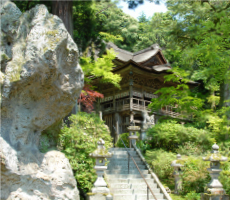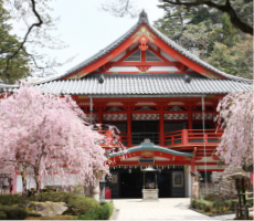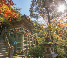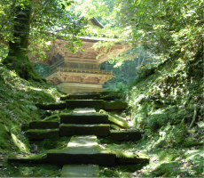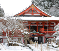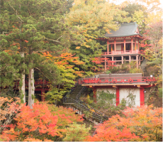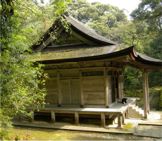 (désigné comme bien culturel important par l’État japonais)la salle de la compassion (Daihi-kaku haiden), la porte chinoise (Karamon), et le pavillon principal (Honden).