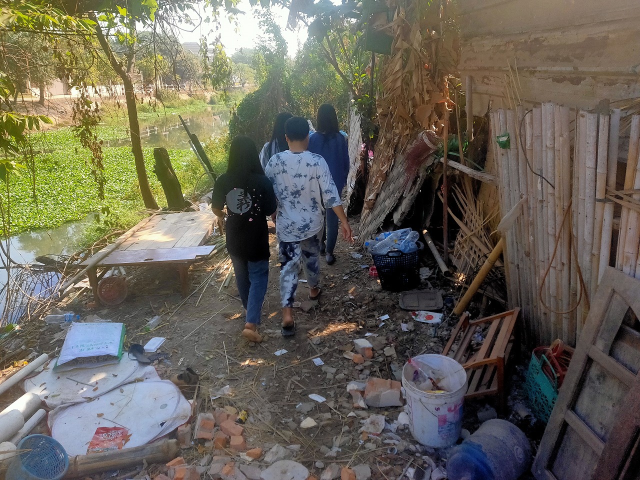 ドンパレープ地区は貧しい家族が地主にわずかのお金を払って土地を借り、竹を組んだりトタンを貼ったりして手作りの小さな家を作って、寄り添いながら暮らしてきました。
